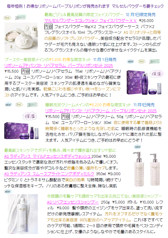 コスメ情報をいち早くご紹介! 限定品や新製品のお問い合わせはメールかお電話でどうぞ!