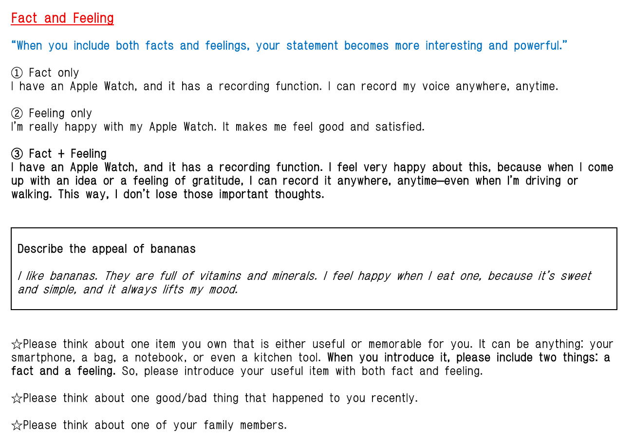 ◆Tip 2 : Fact and Feeling (事実と気持ち)