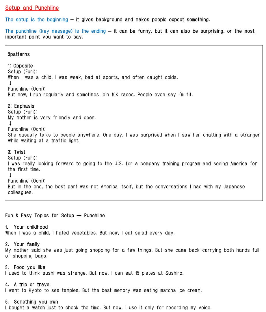 ◆Tip 3 : Setup and Punchline (フリとオチ)